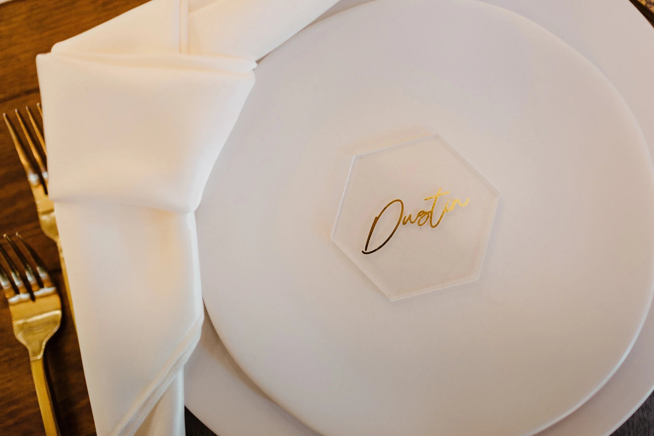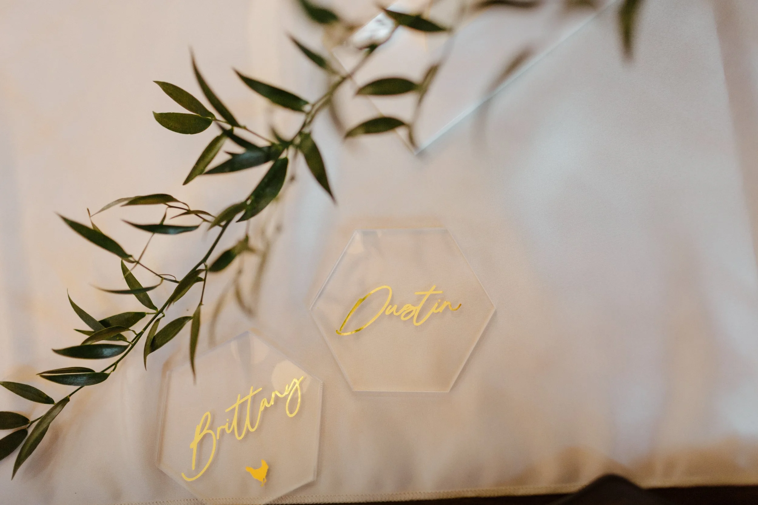 these two got married at loriana in slo, and wanted a neutral color palette with modern lines for their wedding signage. we used black acrylic along with a matte tan acrylic to create a simple look that was still stunning. we love how the florals popped with the signage!